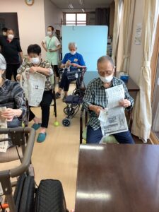 2023-07-05日常のこと ☆レク☆ こんにちは😊 今日はレクリエーションのご紹介です♪ 毎日の体操の後は、 「新聞紙誰が長く切れるか選手権」‼️ を開催しました。 手先と、集中力が必要です✨ 皆さんすごく集中されていました🤗 こんなに長く出来ました〜❣️ スタッフブログ一覧に戻る