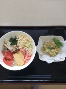 2020-07-27日常のこと ☆今日のお昼ごはん☆ こんにちは〜? 今日のお昼ご飯は大好評のぶっかけ素麺‼️ 天ぷらと一緒に…? 具沢山のぶっかけ素麺になっていますよ〜? 入居者様もお腹いっぱい食べて頂きました❗️ 美味しい秘密は出汁のきいたつゆ✨ ごちそうさまでしたー? スタッフブログ一覧に戻る