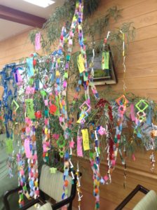 2020-07-06日常のこと ☆明日は七夕です☆ こんにちは? 明日の七夕にむけて、笹の葉に沢山の飾りと短冊を飾りましたよ? 天井まで届いた大きな笹に色とりどりの飾り✨ 入居者様が作って下さいました〜? みんな、願い事もたくさん‼️ 叶いますように…? スタッフブログ一覧に戻る
