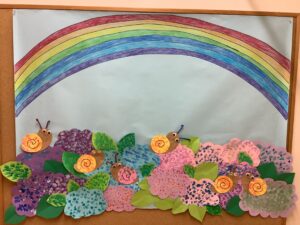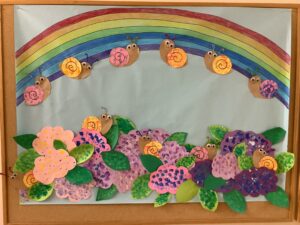 6月になり、紫陽花とカタツムリの壁画を飾りました💠