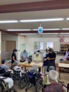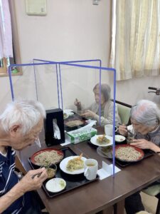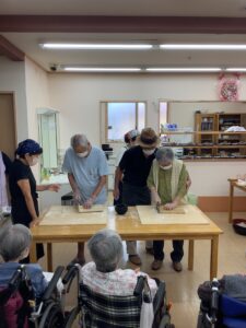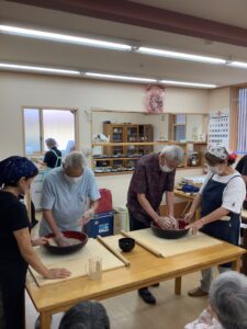 職人さんからそば打ちの手順や道具のお話を聞きながら、