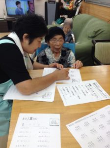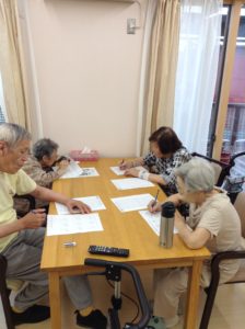 2018-08-08日常のこと 今日のレクは… こんにちは❗️ 本日は雨が降ったりやんだりのお天気ですので 脳トレで頭の 活性化に取り組んでいます‼️ 計算や漢字、単語作りなどやりました? 暗算が得意な方、漢字がスラスラ書ける方、沢山いらっしゃいました。 スタッフブログ一覧に戻る