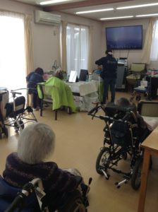 2022-03-22日常のこと 散髪デイ???? こんにちは〜? 先日は入居者様の2ヶ月に1回の 散髪の日でした。 訪問美容師さんにお好みのヘアースタイルを 伝えて若々しくなられていました☺️ スタッフブログ一覧に戻る
