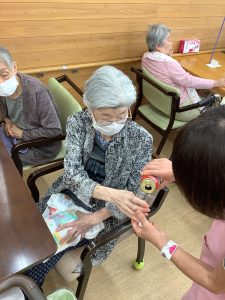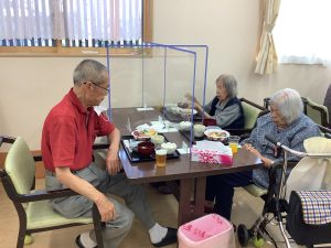 今年の敬老の日のイベントは「くじ引き大会」と昼食にお寿司屋さんに注文した海鮮丼を召し上がって頂きました。