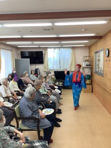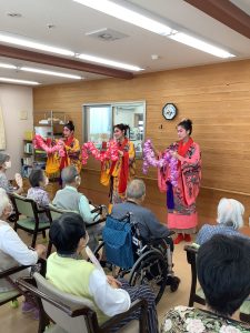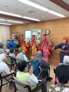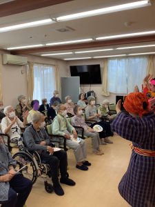 2024-08-21日常のこと 沖縄舞踊① こんにちは~。 今月は沖縄舞踊香川会(カセンカイ)様に踊りを披露して頂く イベントがありました。 衣装もお化粧も華やかで、踊りも味わい深いものでした。 入居者様皆様も楽しまれていたようです。 スタッフブログ一覧に戻る