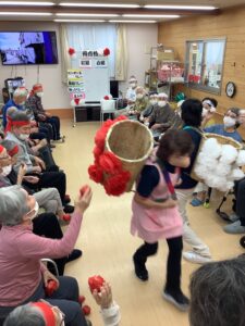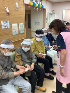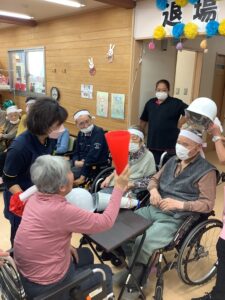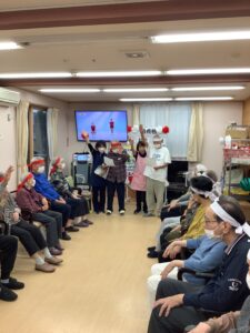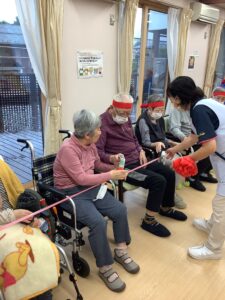 入居者様は紅組白組に分かれて、ピンポン玉リレーや玉入れ等