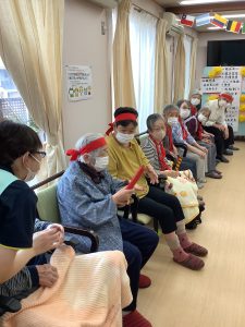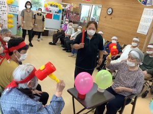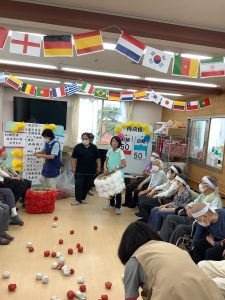 入居者様は紅組と白組に分かれ、力いっぱい競い合われ、