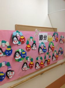 2022-01-25日常のこと 節分のリース製作 こんにちは〜? 早いもので来週はもう節分です❗️ 節分に向けて折り紙のリースを製作しました。 個性豊かな表情の鬼と福の神が 出来上がりました? スタッフブログ一覧に戻る