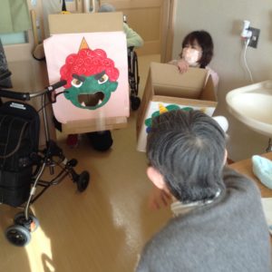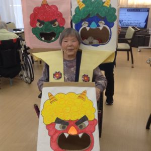 2022-02-05日常のこと 鬼は〜外? こんにちは〜? 節分の日にクローバーホームでは 鬼退治の豆まきを行いました? 皆様、鬼に向けて豆に見たてたボール 力いっぱい投げられていました? スタッフブログ一覧に戻る