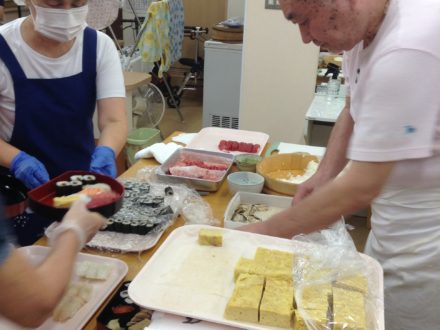 こんにちは〜✨ 時期が戻ってしまいますが先月のご紹介です❗️ 入居者様からのリクエストでお寿司が食べたいなぁとお話を聞くことが良くあります? お寿司美味しいですよね? そこで…寿司職人さんに来ていただきました〜✨✨ クロ…