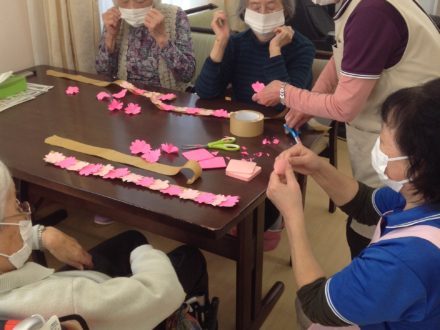 こんにちは〜? 今日のレクリエーションは春に向けて桜を製作しました‼️ 沢山の桜でクローバーホーム内を明るくしたいです?? 皆さんいつもご協力、ありがとうございます❗️