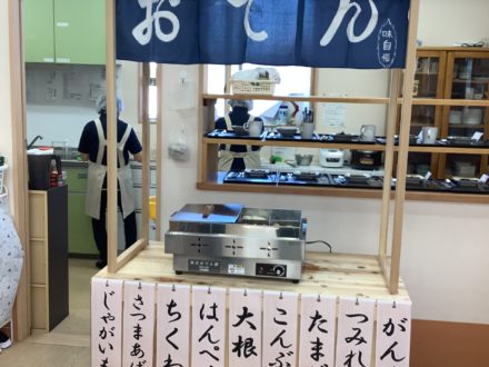こんにちは〜? 今日の昼食は入居者の皆様におでんを 召し上がって頂きました。 職員がお好きな具材をお聞きして、 巻き寿司も一緒にお腹いっぱい 召し上がっていました。
