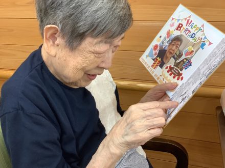 こんにちは〜。 週末は9月生まれの入居者様の お誕生日でした。 今月も美味しいケーキとささやかなプレゼントで お祝いしました。
