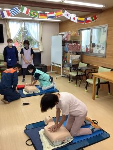 2024-10-20日常のこと AED講習会 こんにちは~。 先日2日に渡りクローバーホーム成田に消防士さんに来て頂き、 AEDの講習をして頂きました。多くの質問にも丁寧に説明して下さり、 とても有意義な時間でした。 消防の方々には感謝申し上げます。 スタッフブログ一覧に戻る