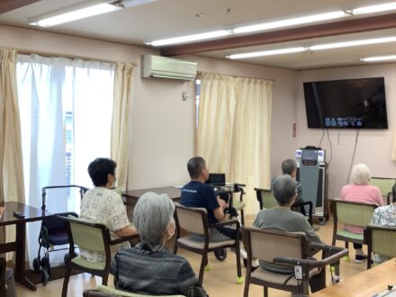 こんにちは~。 今日の体操の時間はいつもの体操に カラオケと盆踊りも加わり、 皆様楽しそうなご様子で頑張られていました。 お疲れさまでした~。
