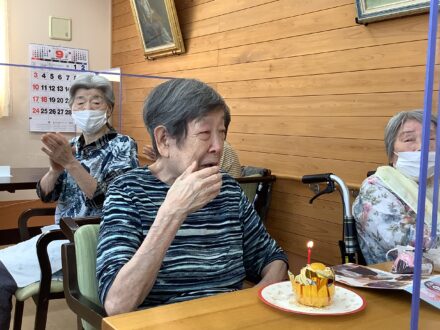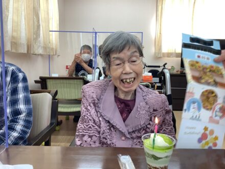 こんにちは〜😊 8月生まれの入居者様のお誕生日会を 先日行いました。 今月はシャインマスカットの カップケーキでお祝いしました🥰