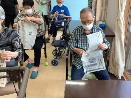 こんにちは😊 今日はレクリエーションのご紹介です♪ 毎日の体操の後は、 「新聞紙誰が長く切れるか選手権」‼️ を開催しました。 手先と、集中力が必要です✨ 皆さんすごく集中されていました🤗 こんなに長く出来ました〜❣️ …