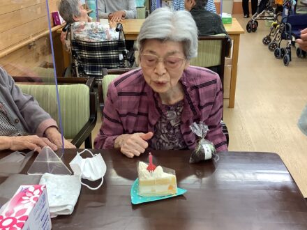 こんにちは~ 7月は3名の入居者様のお誕生日月で 昨日お誕生日会を行いました。 職員手作りのバースデーカード、 心ばかりの贈り物とショートケーキでお祝いしました。